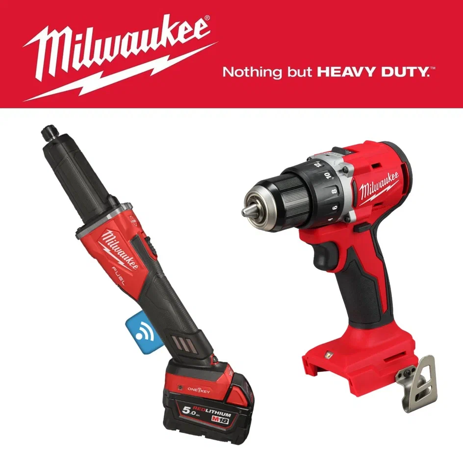 Полная автономность: Прямошлифмашина укомплектована двумя аккумуляторами 5.0 А·ч и быстрым зарядным устройством, которых хватит для продолжительной работы обоих инструментов. Дрель работает от той же аккумуляторной платформы M18.