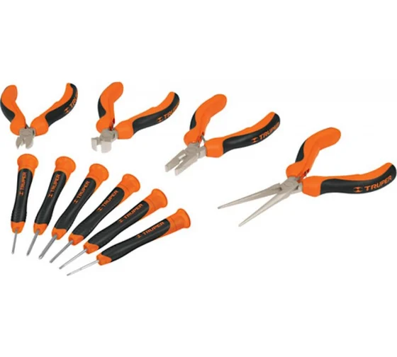 Набор из 10 миниотверток и миниплоскогубцев Truper JGO-MP-DJ 18200 предназначен для работы с резьбовыми соединениями, их удержания, монтажа или демонтажа. Рабочие части выполнены из кованной стали, прочной и долговечной. Рукоятки не скользят в руке, тем самым обеспечивая лучший контроль над инструментом. Набор состоит из миниотверток и плоскогубцев.